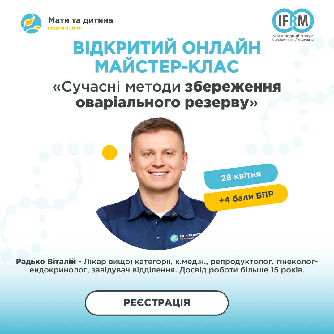 28 Квітня @ 3:00 pm - 6:00 pm Майстер-клас «Сучасні методи збереження оваріального резерву» Зареєструватись